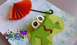 در آخر قورباغه را روي برگه چسبانده و چتر و دسته چتر را هم به آن اضافه کنيد .