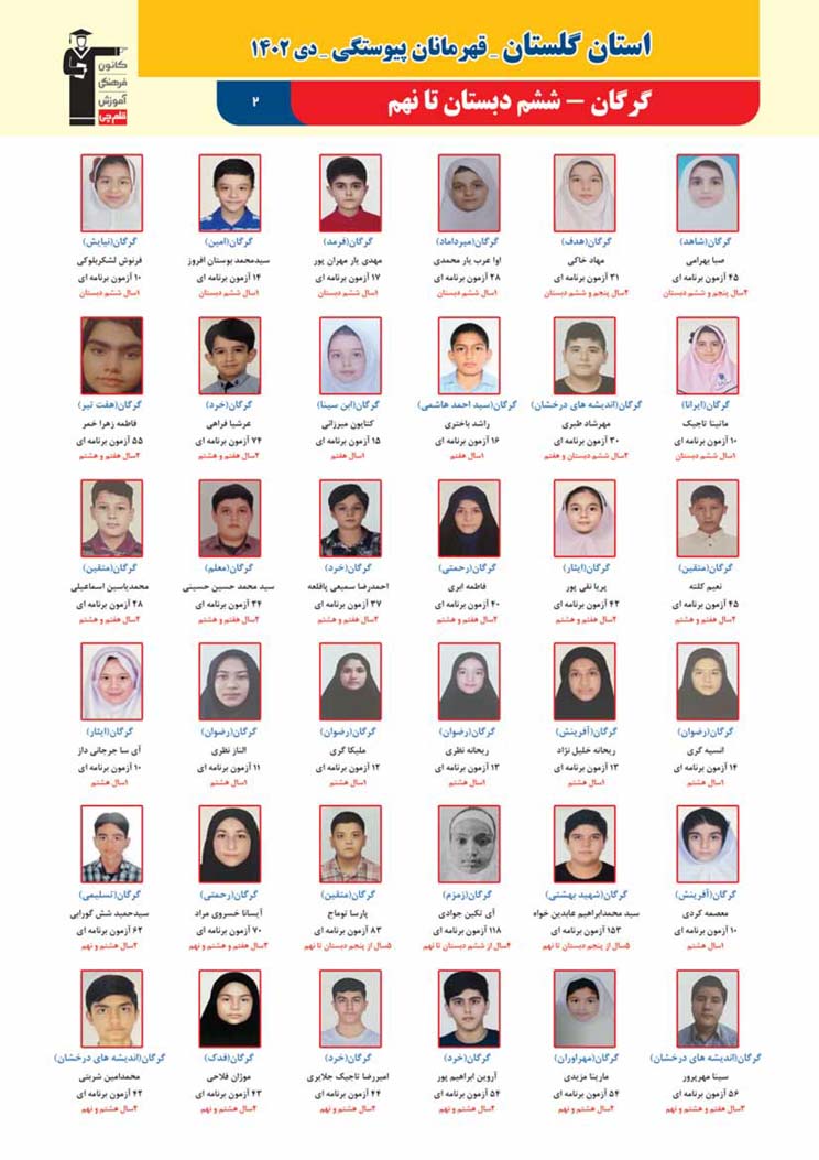 استان گلستان : قهرمانان پیوستگی (دی ماه 1402) را در این خبر مشاهده می‌نمایید