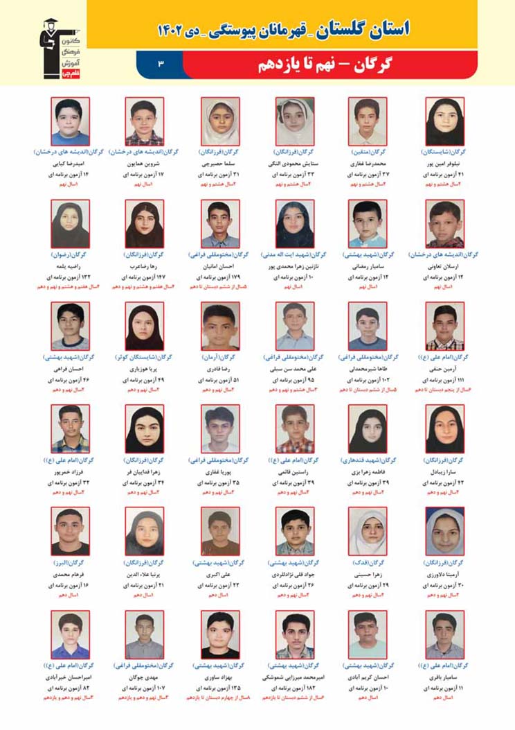 استان گلستان : قهرمانان پیوستگی (دی ماه 1402)