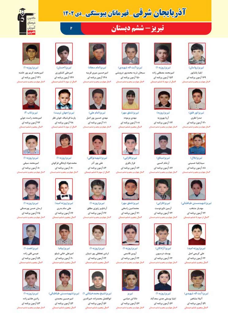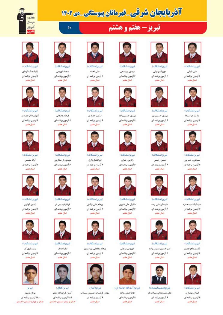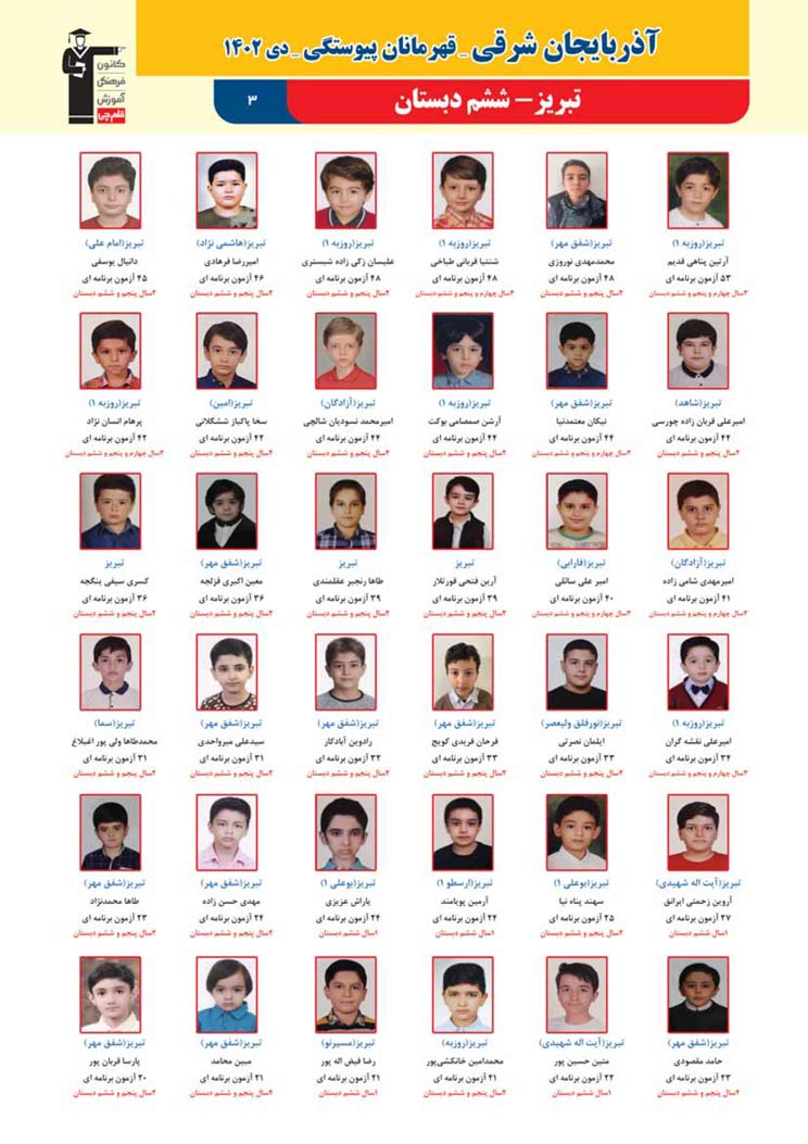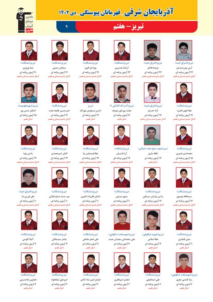 استان آذربایجان شرقی (پسر): قهرمانان پیوستگی (دی ماه 1402)