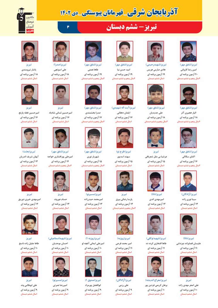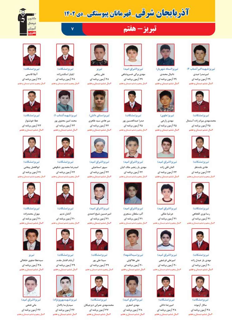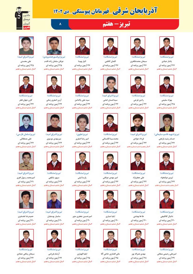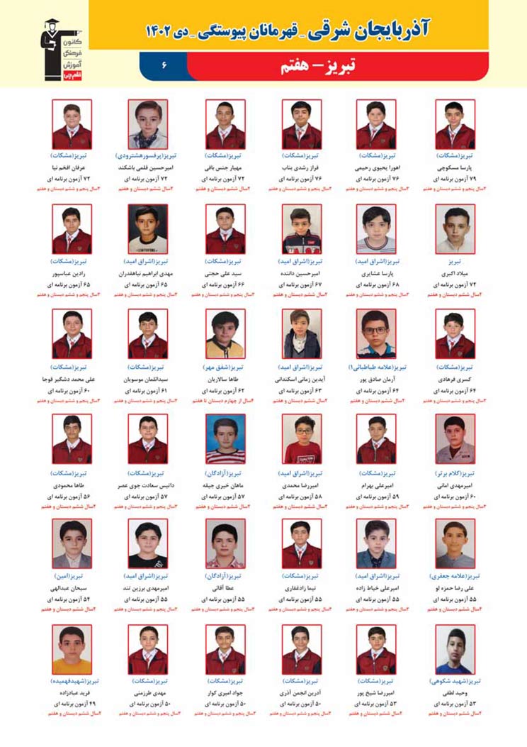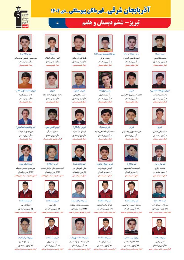 استان آذربایجان شرقی (پسر): قهرمانان پیوستگی (دی ماه 1402)