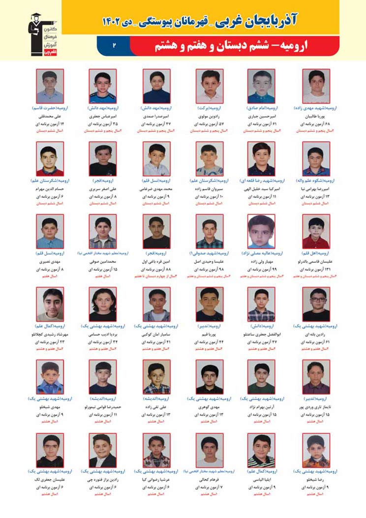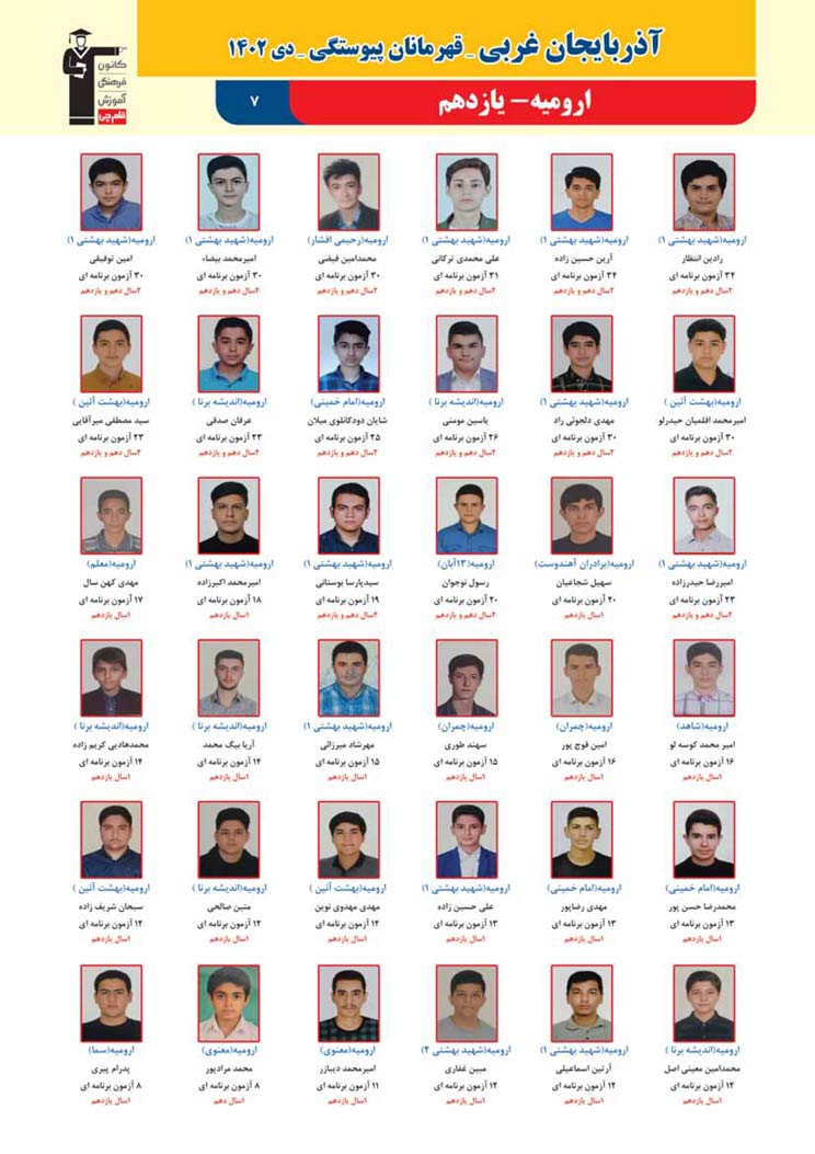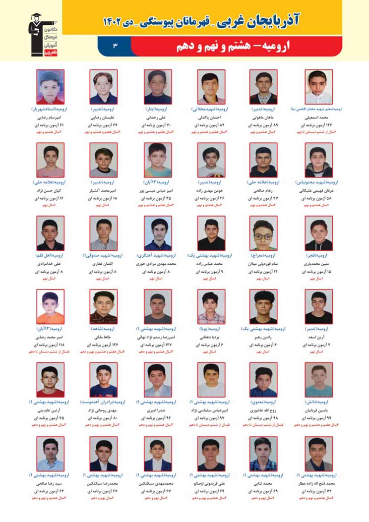 استان آذربایجان غربی (پسر): قهرمانان پیوستگی (دی ماه 1402)