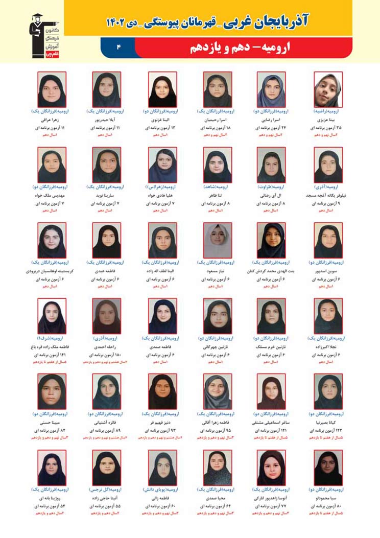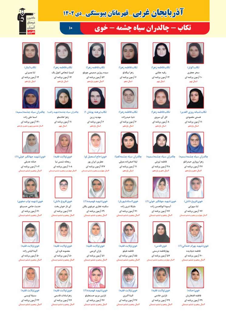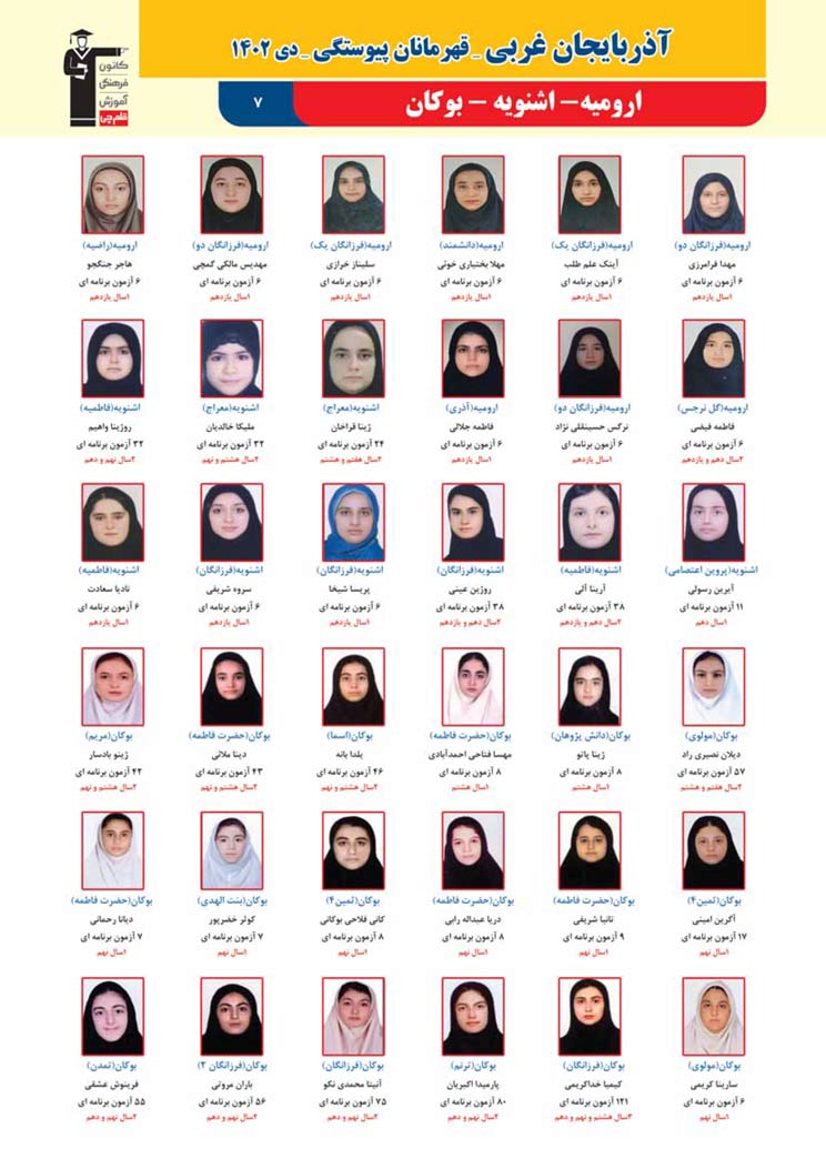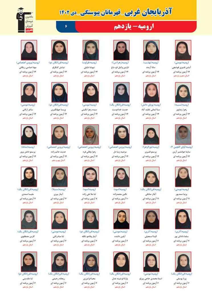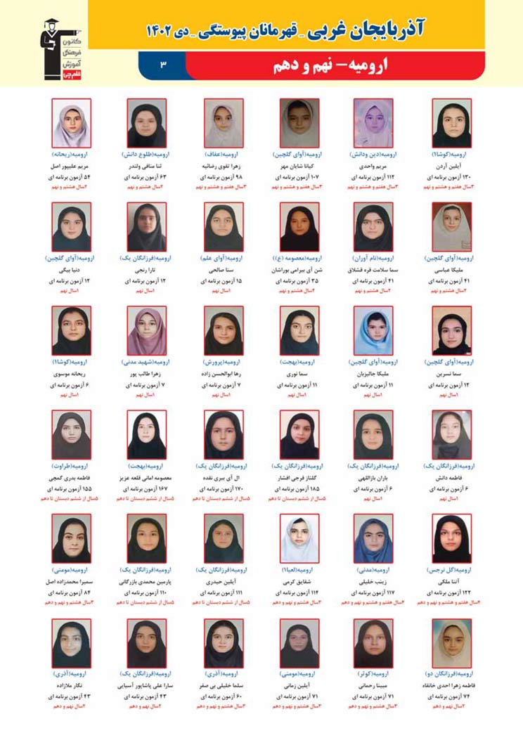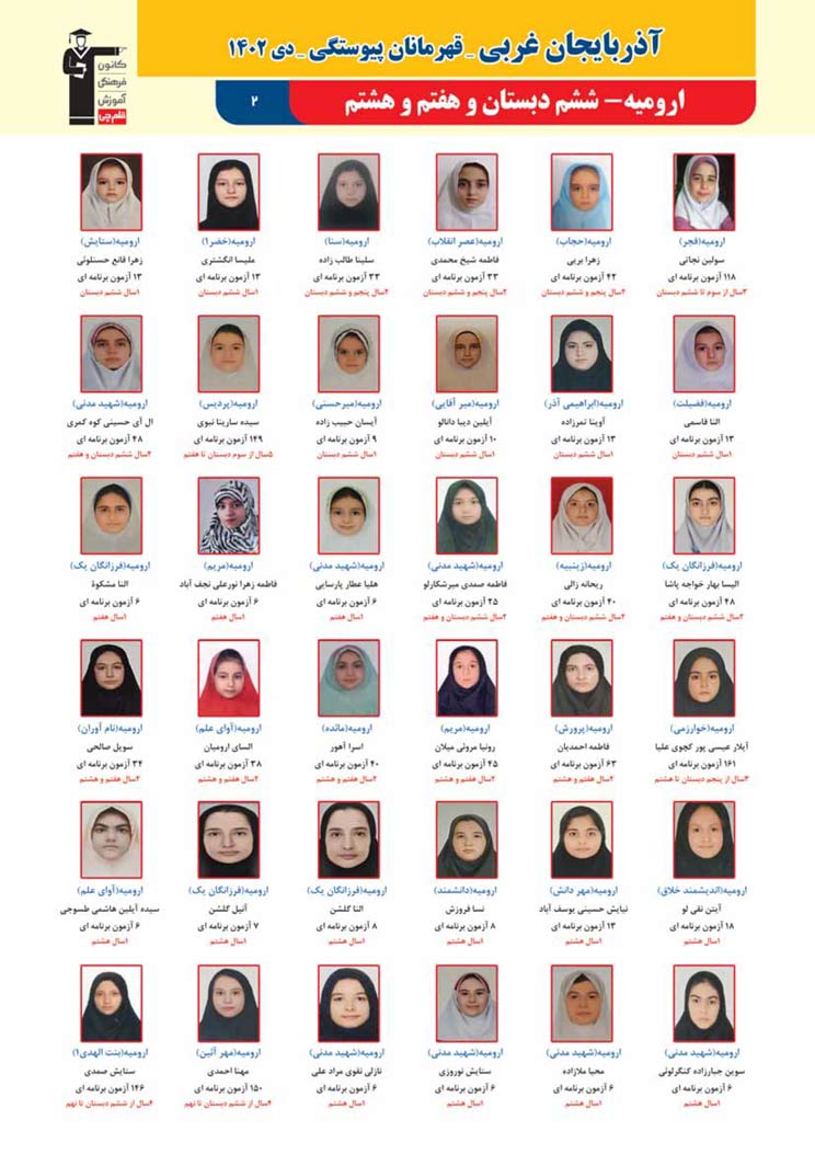 استان آذربایجان غربی (دختر): قهرمانان پیوستگی (دی ماه 1402)