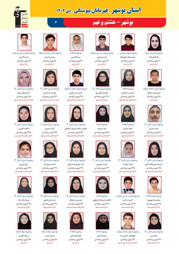 استان بوشهر: قهرمانان پیوستگی (دی ماه 1402)