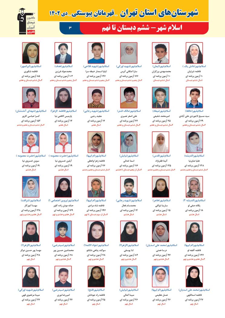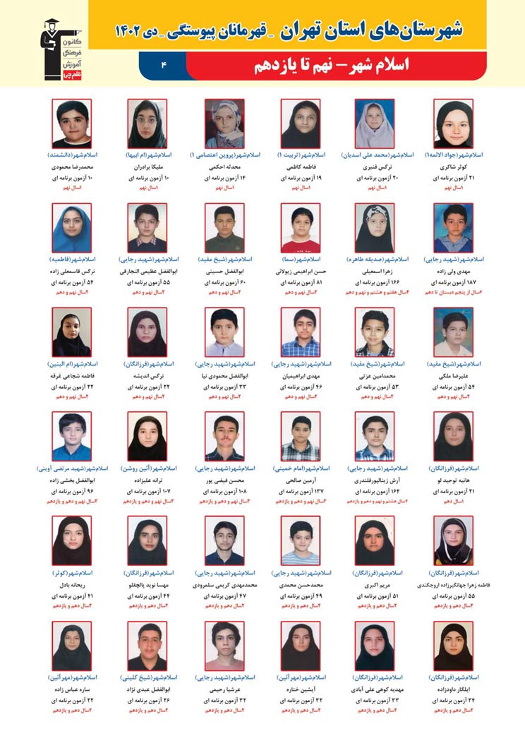 شهرستان‌های تهران : قهرمانان پیوستگی (دی ماه 1402)