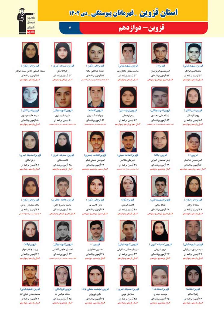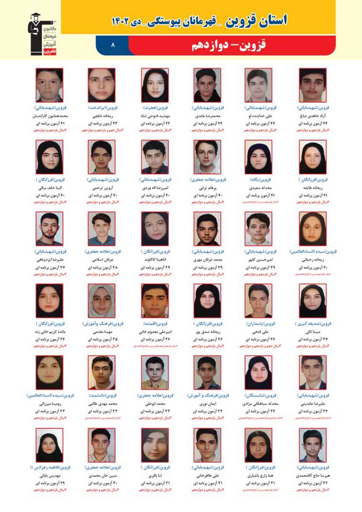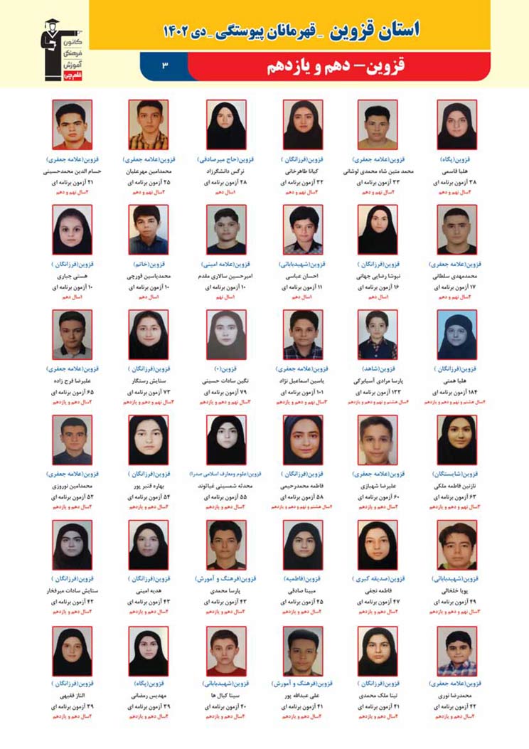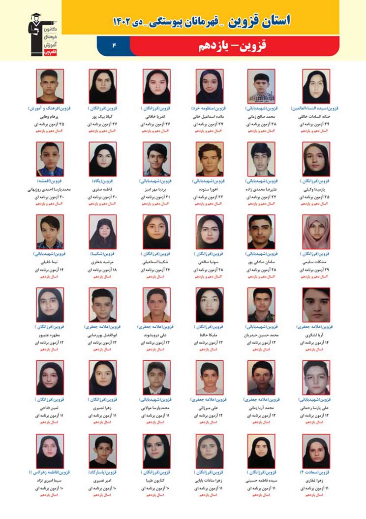 استان قزوین: قهرمانان پیوستگی (دی ماه 1402)