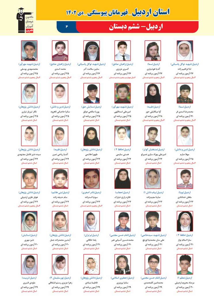 استان اردبیل : قهرمانان پیوستگی (دی ماه 1402)