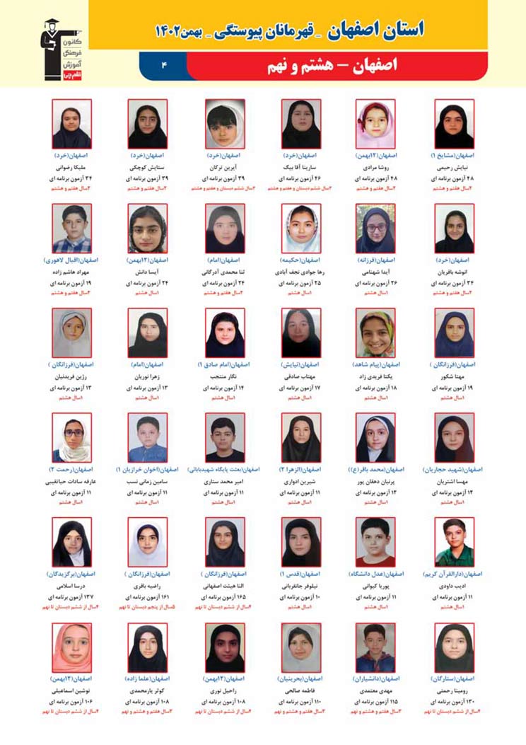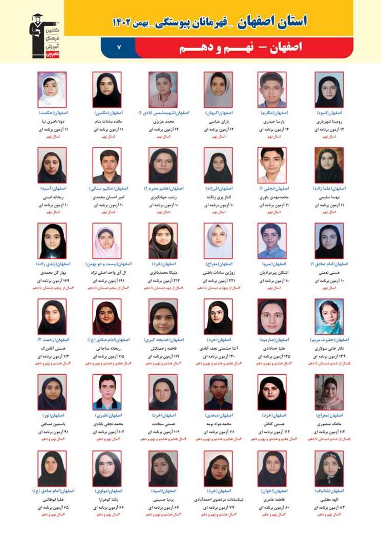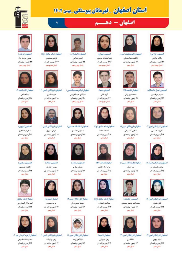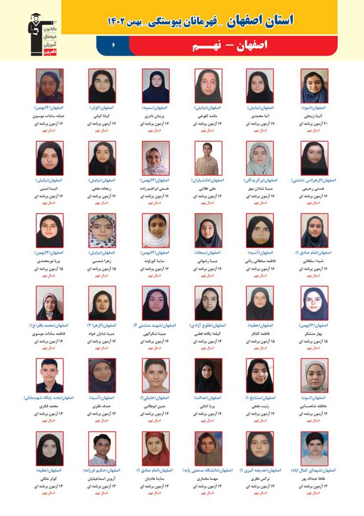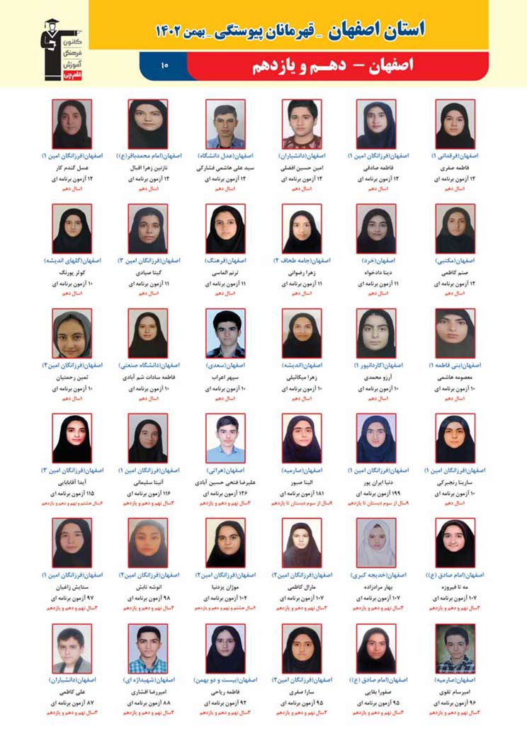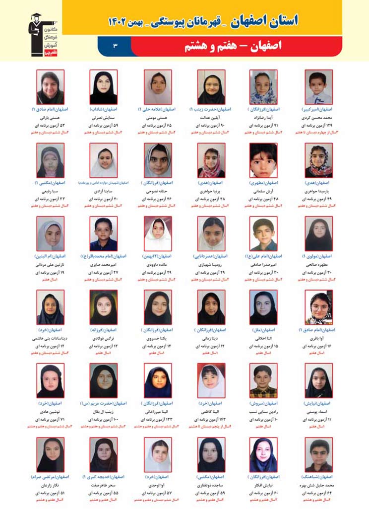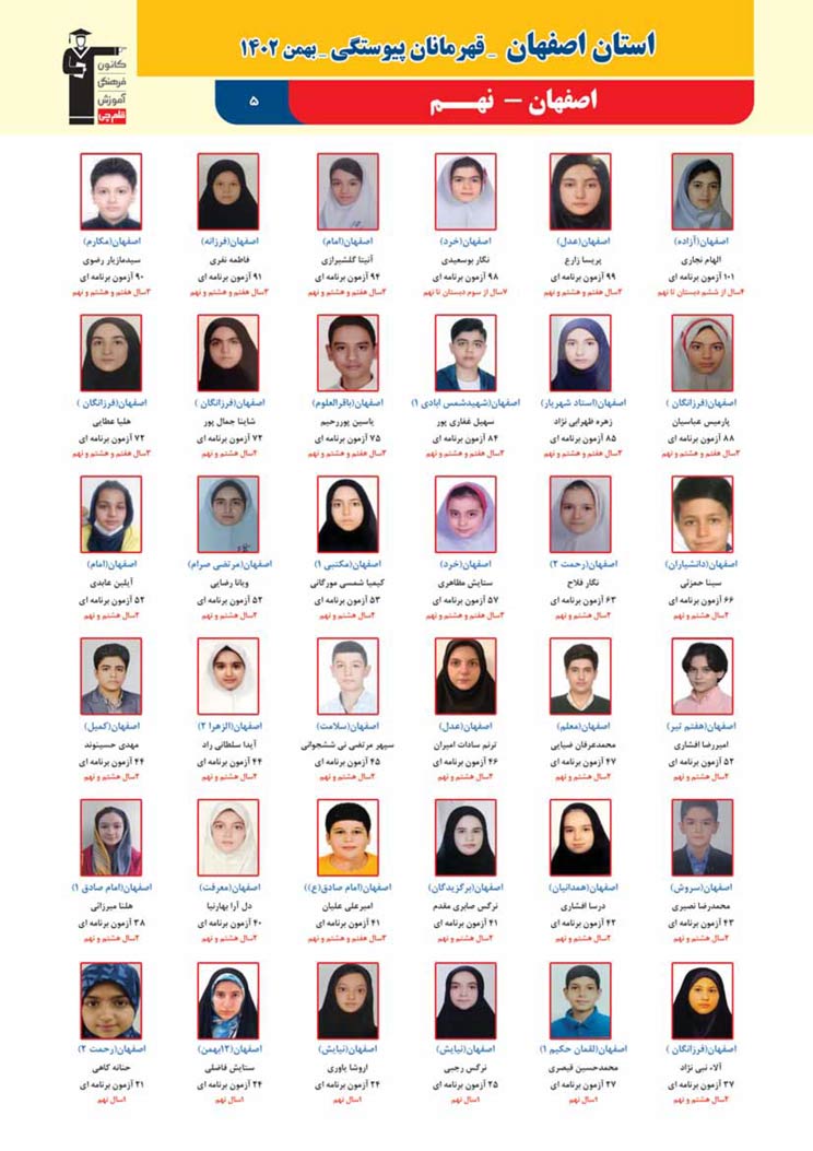 استان اصفهان : قهرمانان پیوستگی (دی ماه 1402)
