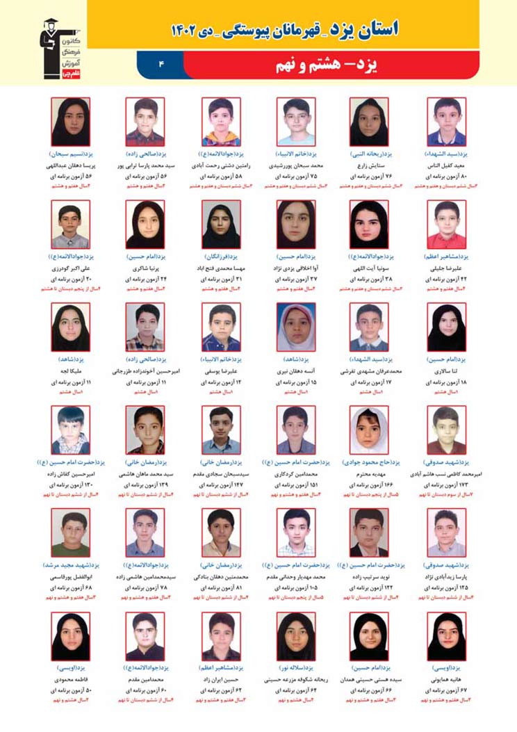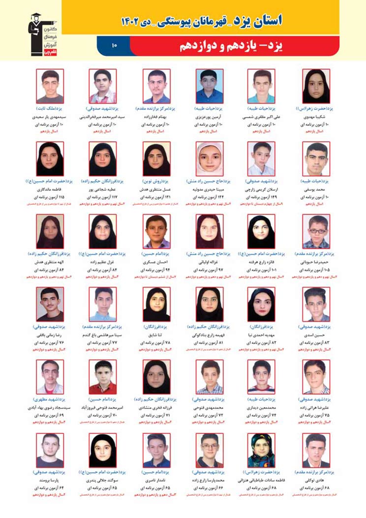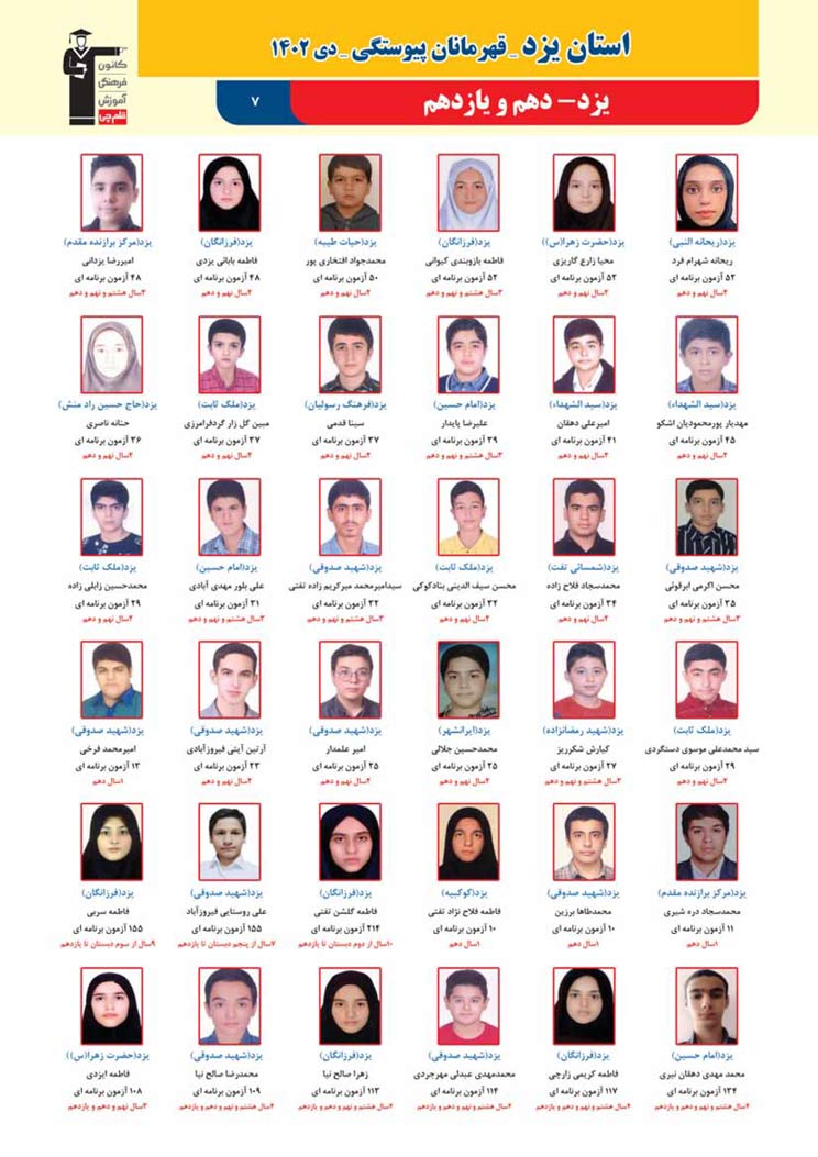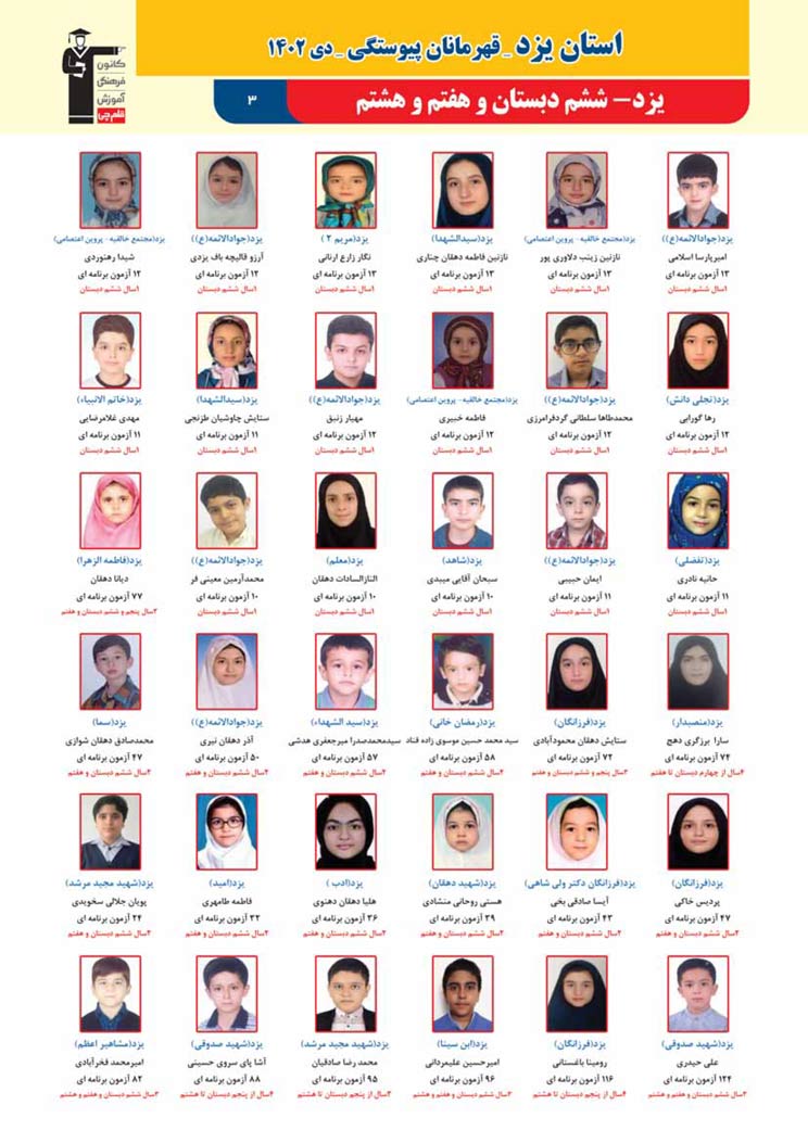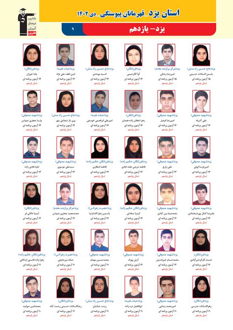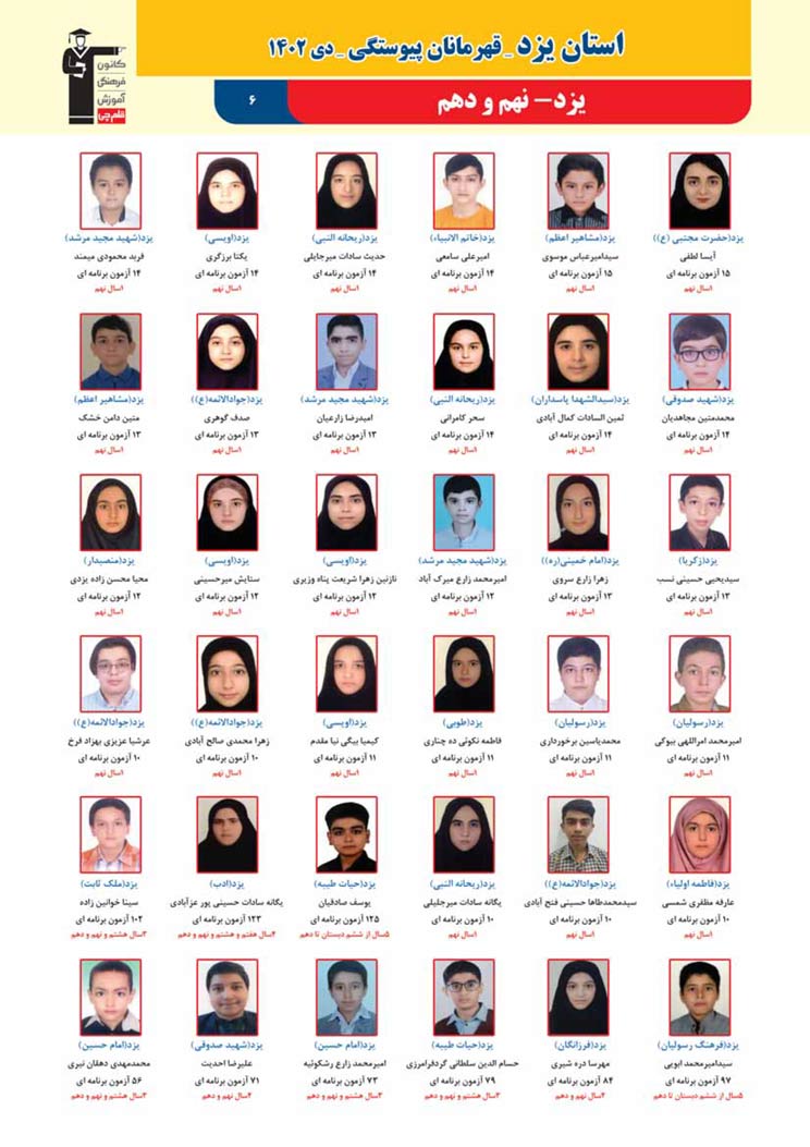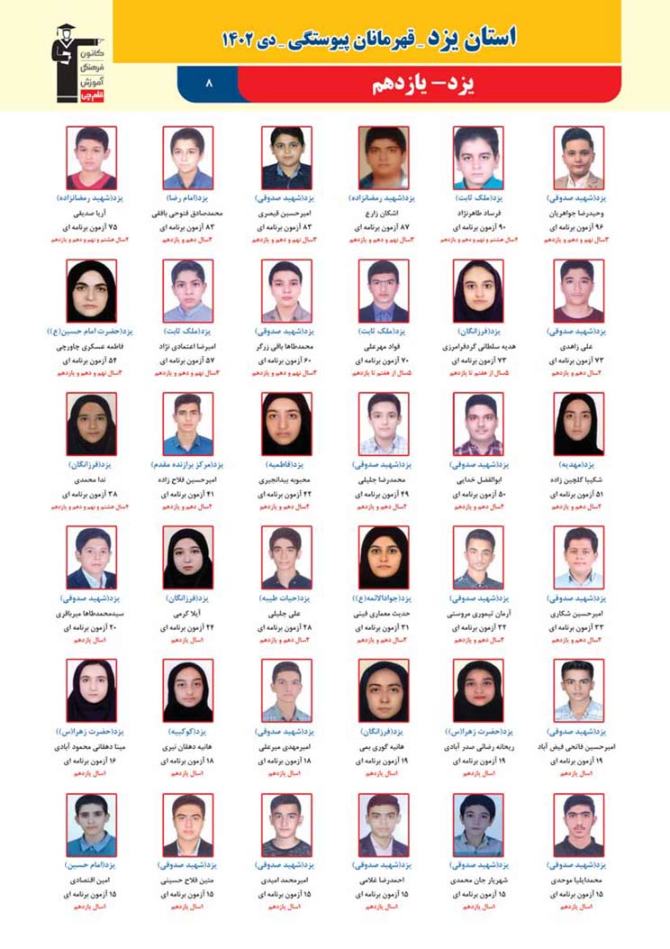 استان یزد : قهرمانان پیوستگی (دی ماه 1402)