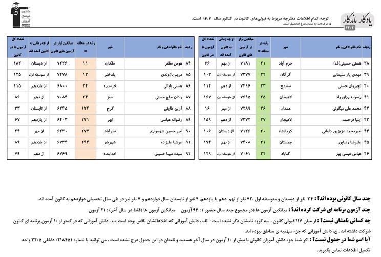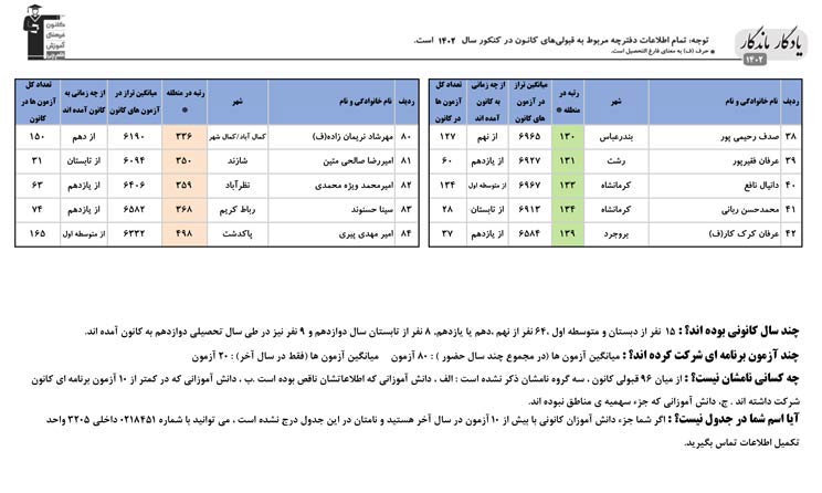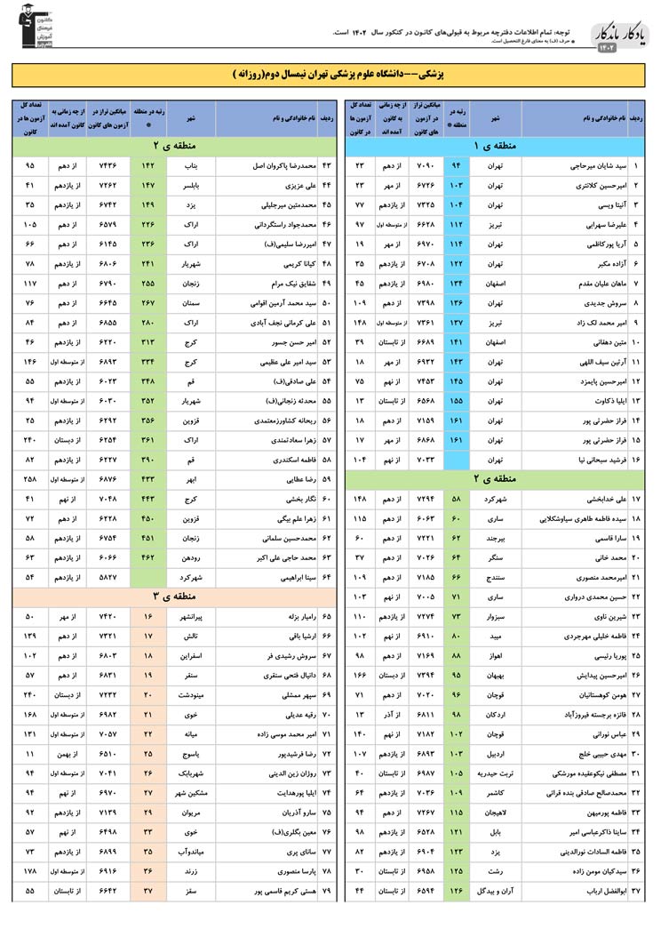 یادگار ماندگار : قبولی های کانونی علوم پزشکی تهران در همه رشته ها در سال 1402 را در ادامه مشاهده کنید.فایل با کیفیت قبولی های سال 1402 را در قسمت فایل های ضمیمه دانلود کنید.