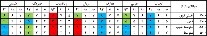 جدول سطح دشواري کنکور رياضي92