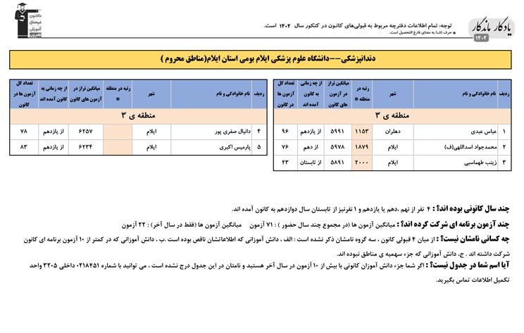 یادگار ماندگار : قبولی های کانونی دانشگاه علوم پزشکی ایلام در همه رشته ها در سال 1402 را در ادامه مشاهده کنید.فایل با کیفیت قبولی های سال 1402 را در قسمت فایل های ضمیمه دانلود کنید.