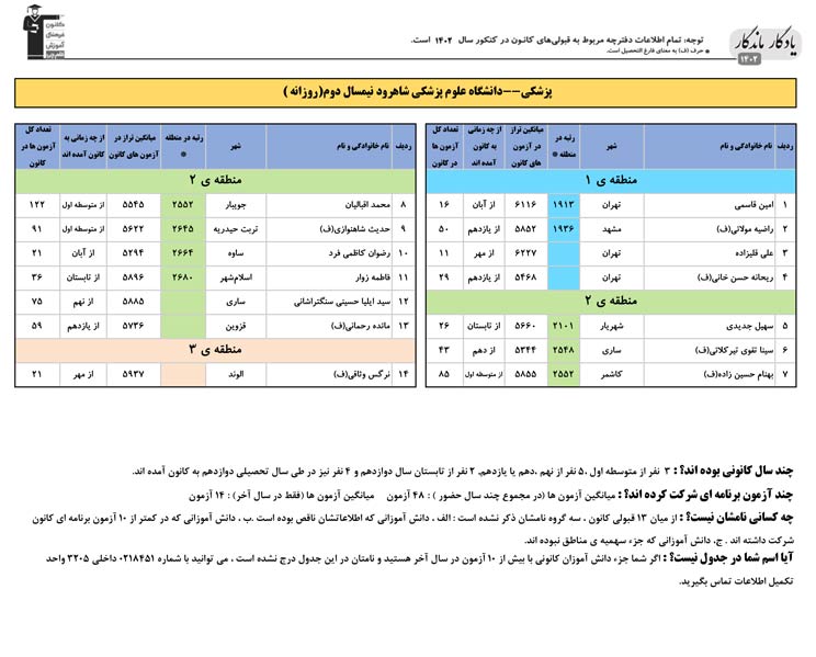 یادگار ماندگار : قبولی های کانونی دانشگاه علوم پزشکی شاهرود در همه رشته ها در سال 1402 را در ادامه مشاهده کنید.فایل با کیفیت قبولی های سال 1402 را در قسمت فایل های ضمیمه دانلود کنید.