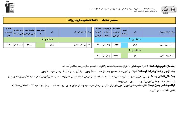 یادگار ماندگار : قبولی های کانونی دانشگاه صنعتي شاهرود در همه رشته ها در سال 1402 را در ادامه مشاهده کنید.فایل با کیفیت قبولی های سال 1402 را در قسمت فایل های ضمیمه دانلود کنید.