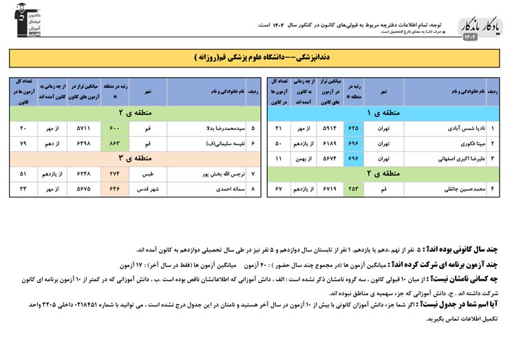 یادگار ماندگار : قبولی های کانونی دانشگاه علوم پزشکی قم در همه رشته ها در سال 1402 را در ادامه مشاهده کنید.فایل با کیفیت قبولی های سال 1402 را در قسمت فایل های ضمیمه دانلود کنید.