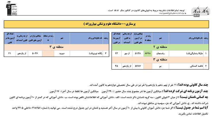 یادگار ماندگار : قبولی های کانونی دانشگاه علوم پزشکی بم در همه رشته ها در سال 1402 را در ادامه مشاهده کنید.فایل با کیفیت قبولی های سال 1402 را در قسمت فایل های ضمیمه دانلود کنید.