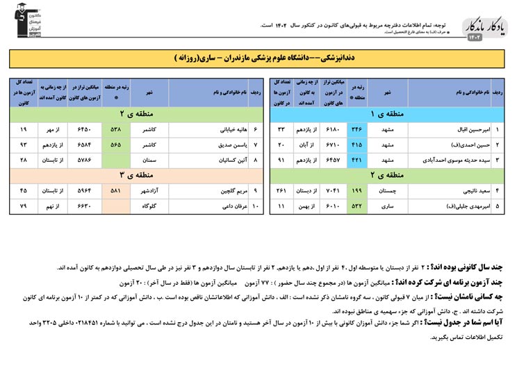 یادگار ماندگار : قبولی های کانونی دانشگاه علوم پزشکی مازندران - ساری در همه رشته ها در سال 1402 را در ادامه مشاهده کنید.فایل با کیفیت قبولی های سال 1402 را در قسمت فایل های ضمیمه دانلود کنید.