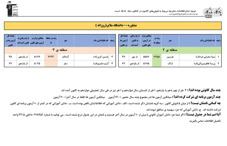 یادگار ماندگار : قبولی های کانونی دانشگاه ملایر در همه رشته ها در سال 1402 را در ادامه مشاهده کنید.فایل با کیفیت قبولی های سال 1402 را در قسمت فایل های ضمیمه دانلود کنید.