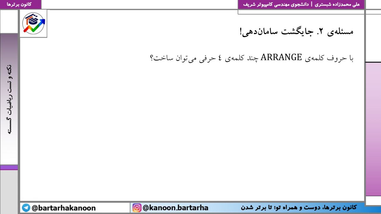 سلام به همهی دوستان دوازدهم ریاضی، و دوستداران ریاضیات گسسته 😁✋🏻
