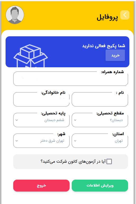 - 3- اگر اولین باری است که وارد پلکان می شوید پس از وارد کردن شماره موبایل و کد ، مشخصات خود را وارد کنید.