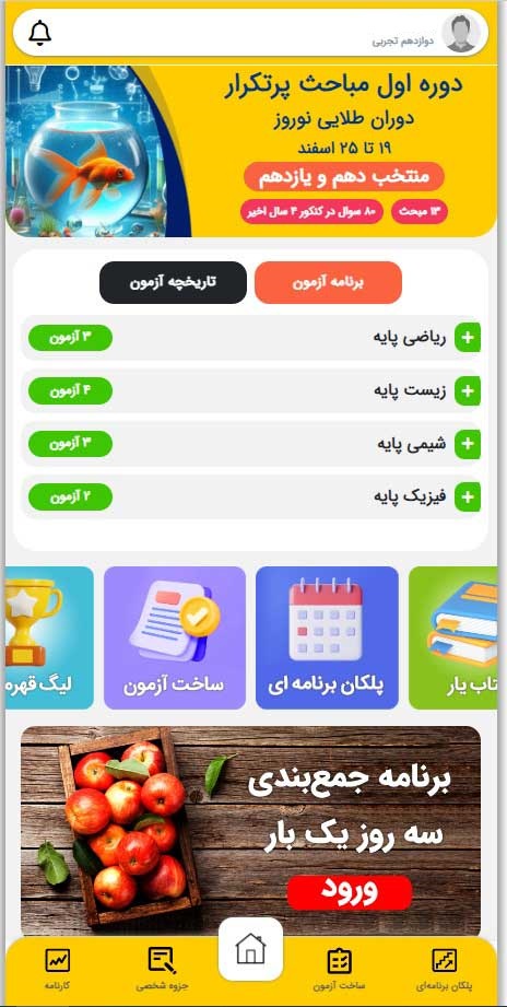 - 6- از بسته های منتخب مبحثی نیز می توانید استفاده کنید. هم درصد و هم تراز بگیرید و برنامه خود را روزانه متعادل کنید.