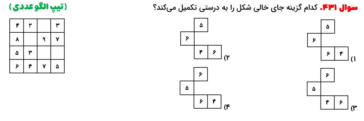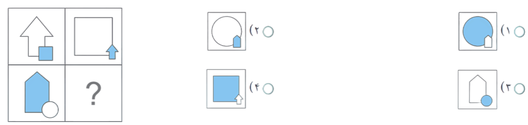 - سوالات مصورسازی: این سوالات شامل توانایی تصور و تصویرسازی مفاهیم و اطلاعات مختلف است.