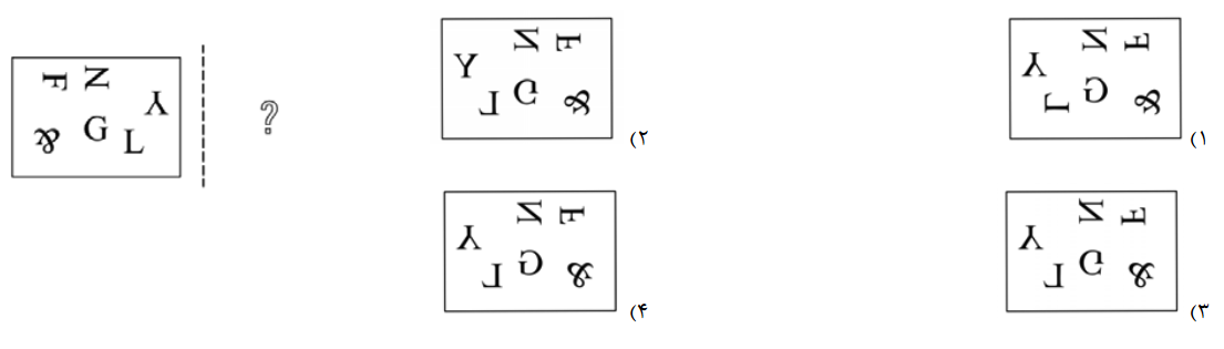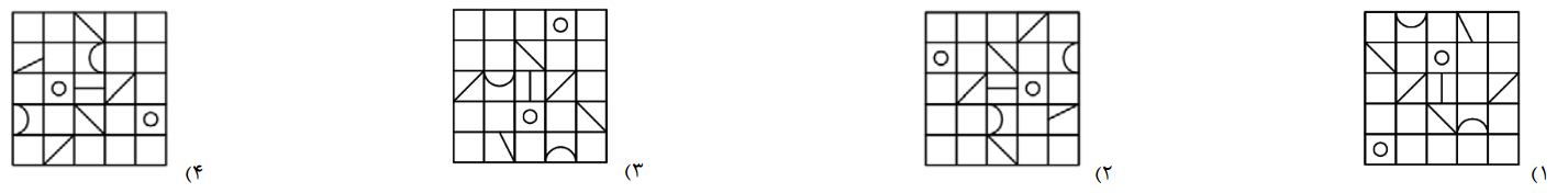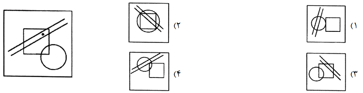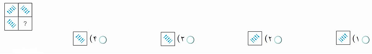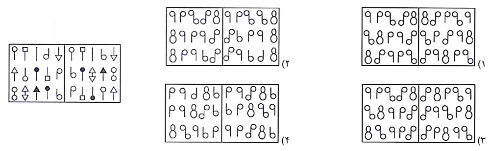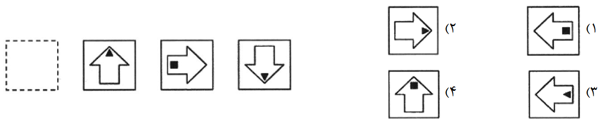 پاسخ تشریحی: گزینه 4- جهت فلش دو طرفه به میانه رنگ سفید و سیاه است(حذف گزینههای 2 و 3) و مربع و فلش دو طرفه روبه روی هم هستند(حذف گزینه1).