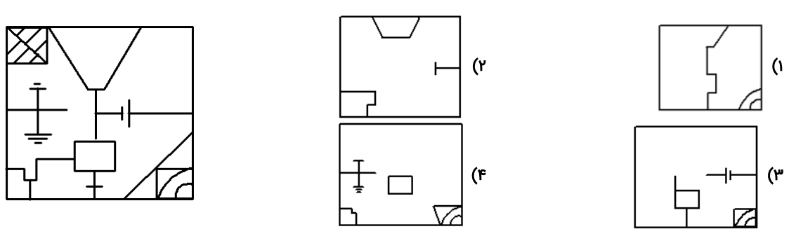 پاسخ تشریحی: گزینه 4- مثلث و مربع روبه روی هم هستند(حذف گزینه 2) با توجه به تکنیک L می توان شکل مقابل را برای گسترده رسم کرد.