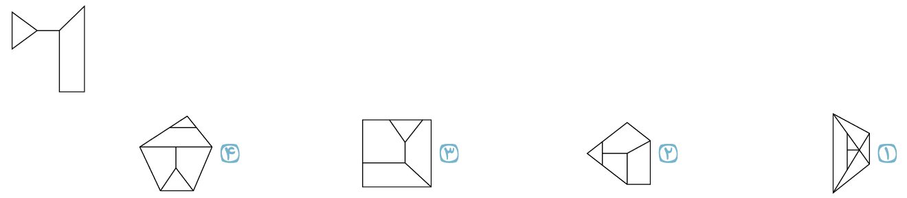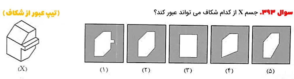 سوال 364. کدام شکل سه بعدی در کادر بالا، برای ساختن شکل سوال چرخیده است؟