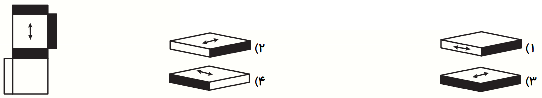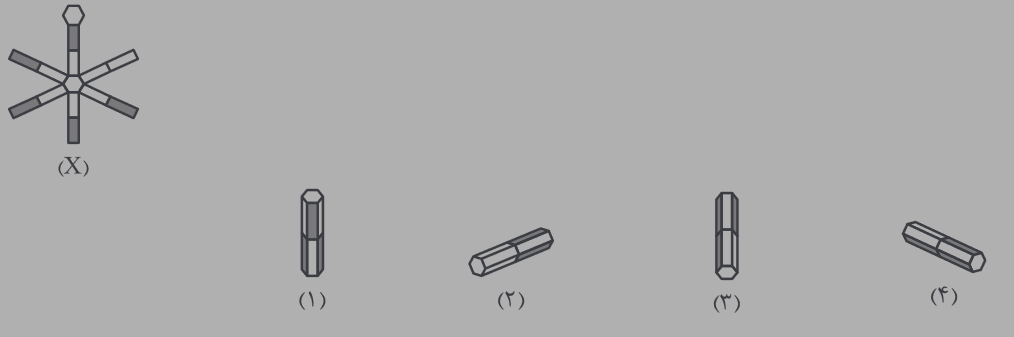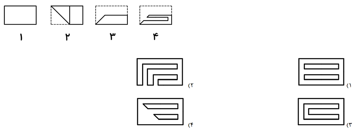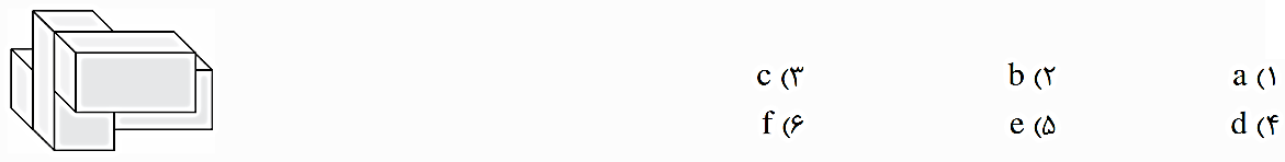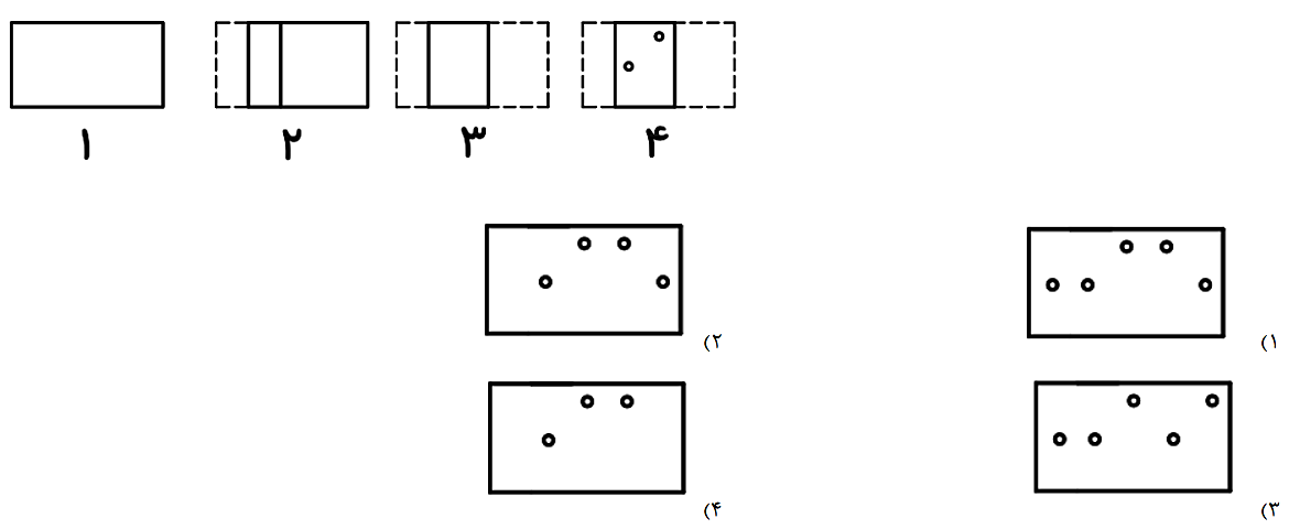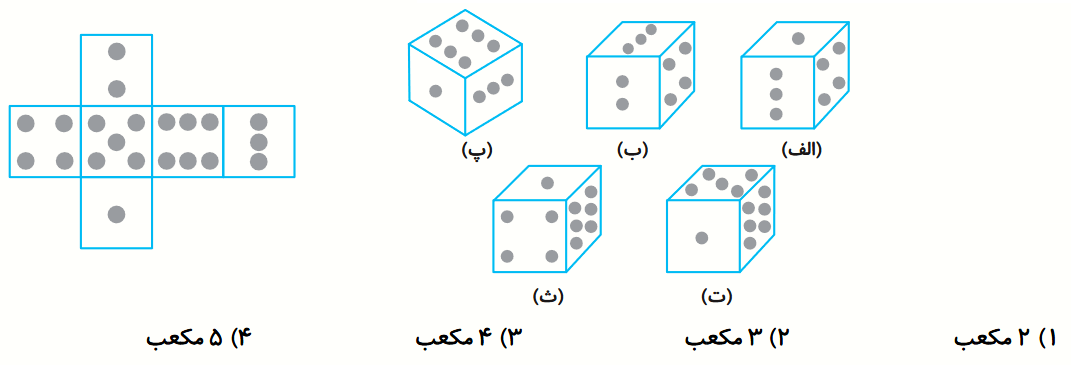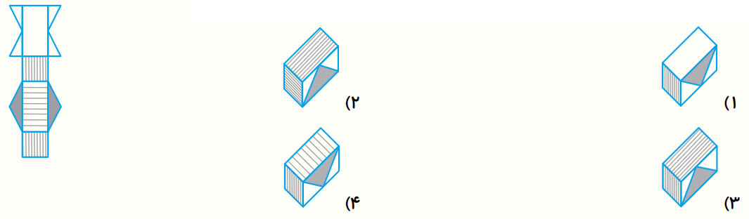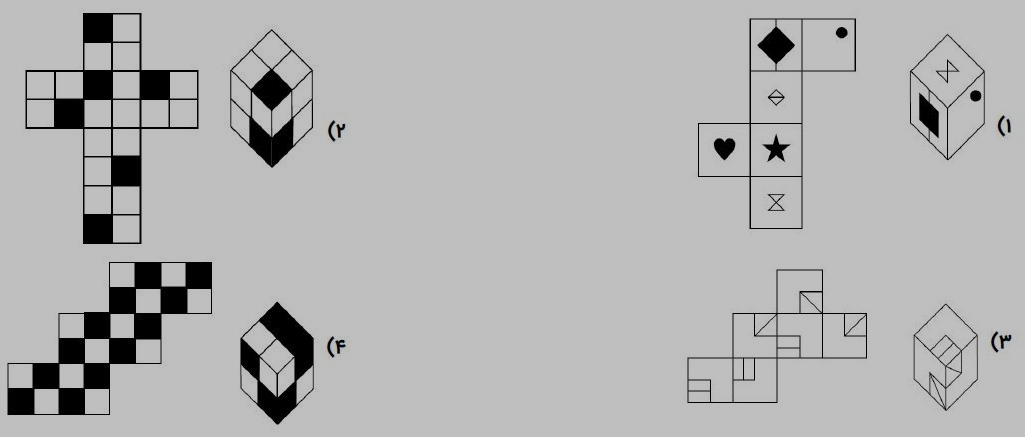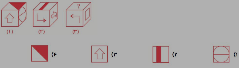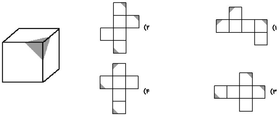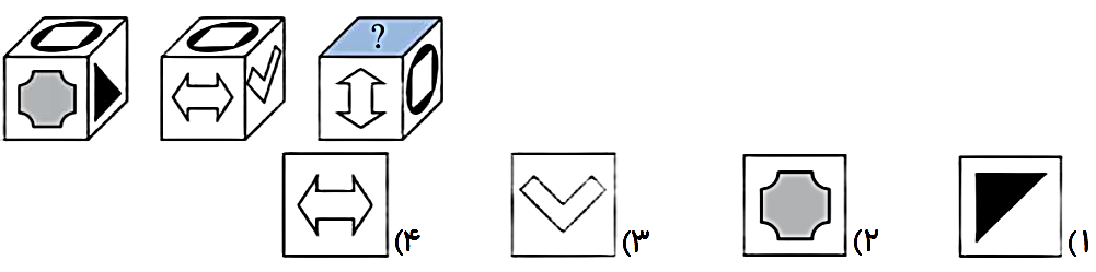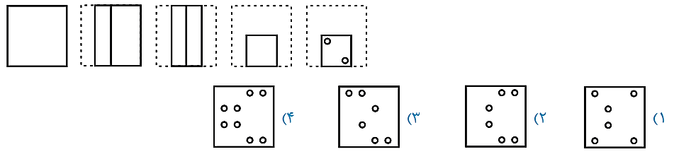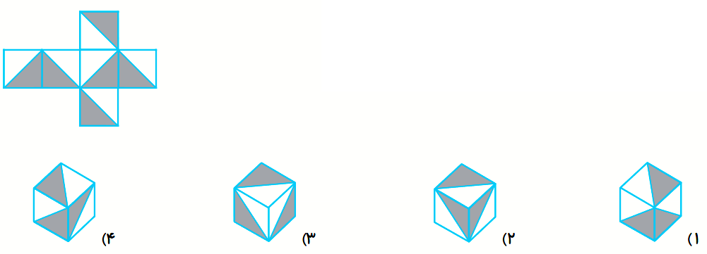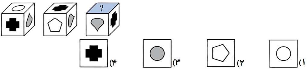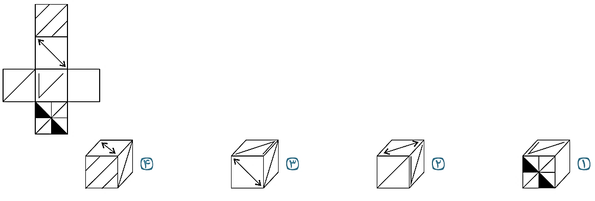 پاسخ تشریحی: گزینه 4- وجه های یک و چهار روبه روی هم(حذف گزینه1) و وجه های سه و شش روبه روی هم(حذف گزینه 2) و وجه های دو و پنج رو به روی هم( حذف گزینه 3) هسند.
