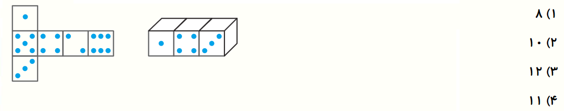 پاسخ تشریحی: گزینه 2- روبه روی وجه یک، وجه سه و روبه روی وجه چهار، وجه شش و ربه روی وجه سه، وجه یک خواهد بود که سر جمع 10 خواهد شد.