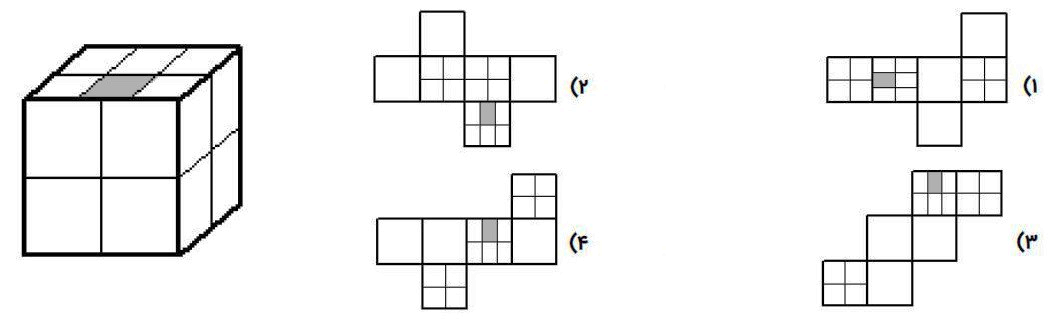 سوال 333. با توجه به مکعب های رو به رو، کدام گزینه گسترده صحیح آن خواهد بود؟