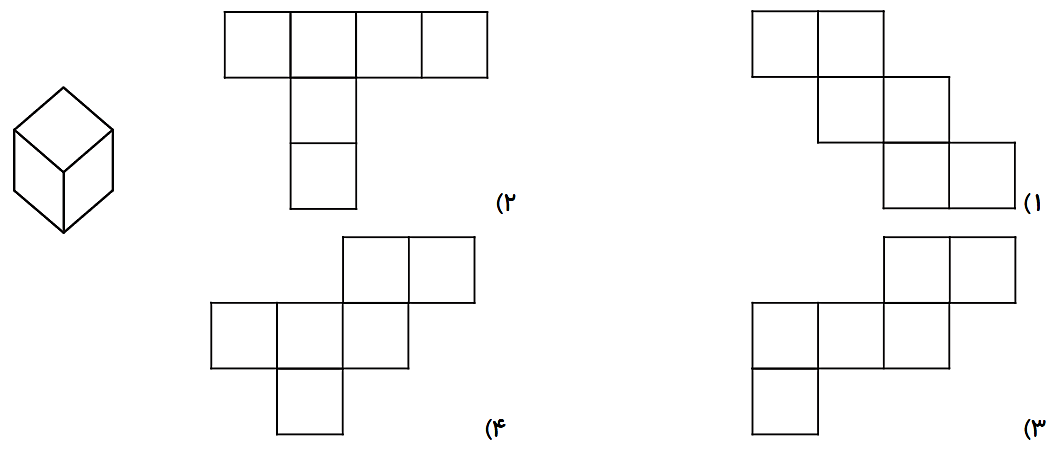 سوال 318. چند تا از اشکال زیر بسته مکعب رو به رو را به درستی نشان می دهد؟