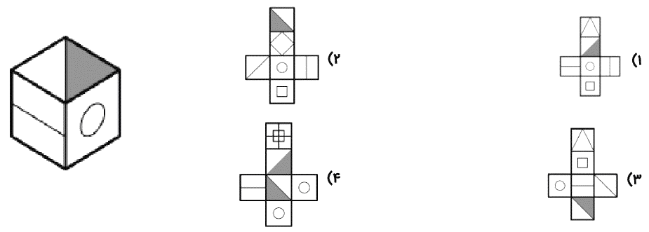 سوال 340. کدام گزینه گسترده صحیح مکعب رو به رو خواهد بود؟