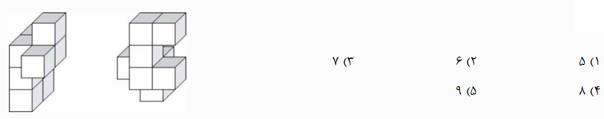 پاسخ تشریحی: گزینه 5-با شمارش های مکعب های کوچک به گزینه 5 می رسید.