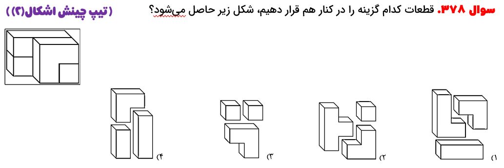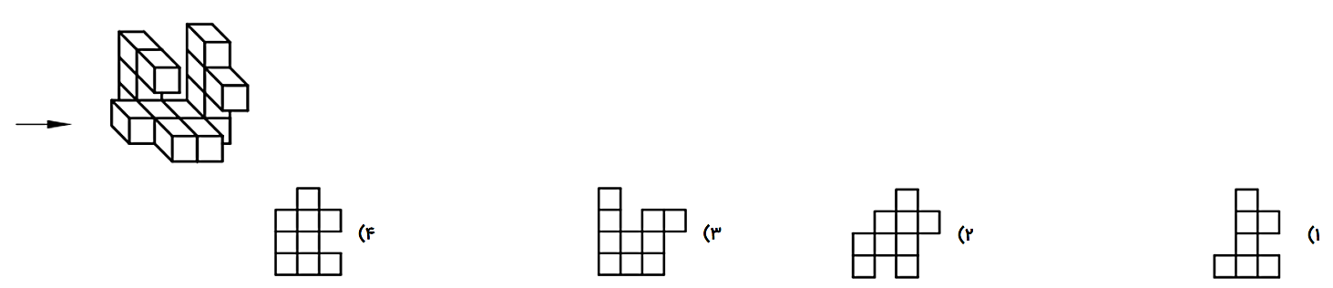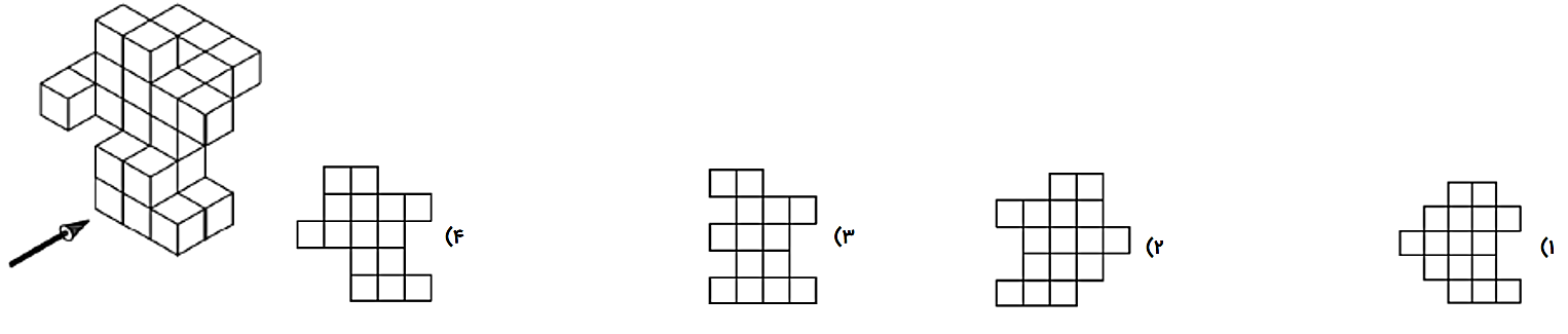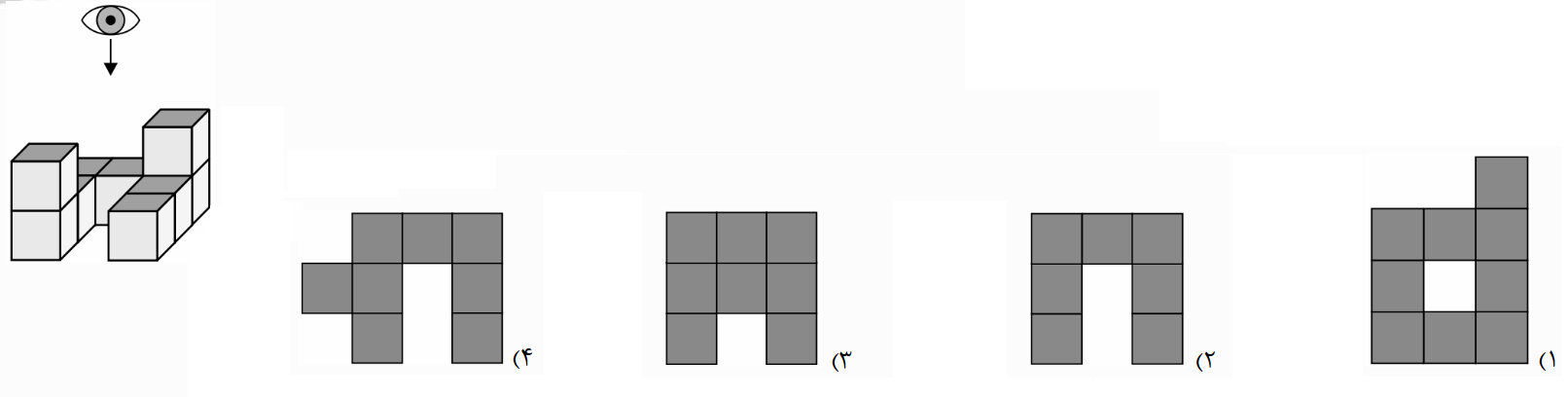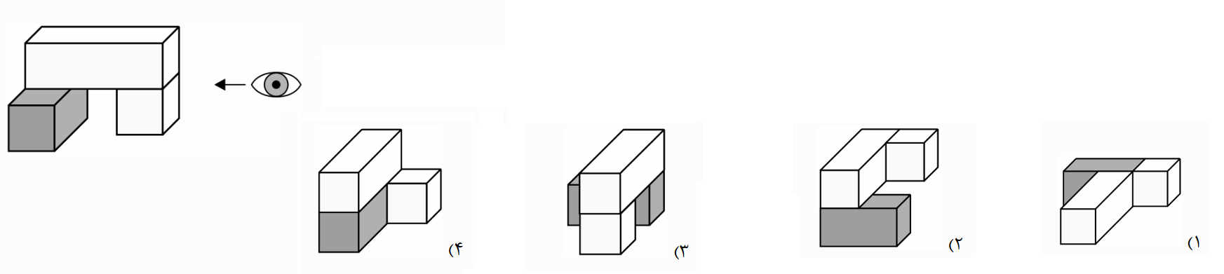 پاسخ تشریحی: گزینه 4-با شمارش های مکعب های کوچک به گزینه 4 می رسید.