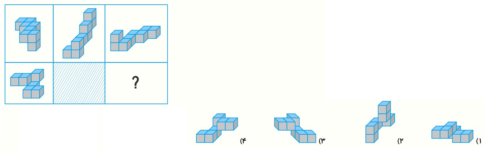 سوال 337. با توجه به مکعب های رو به رو، کدام گزینه شکل علامت سوال خواهد بود؟