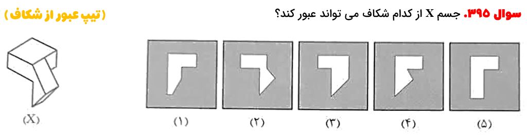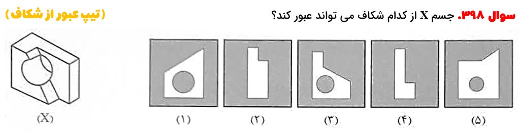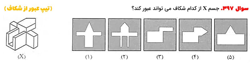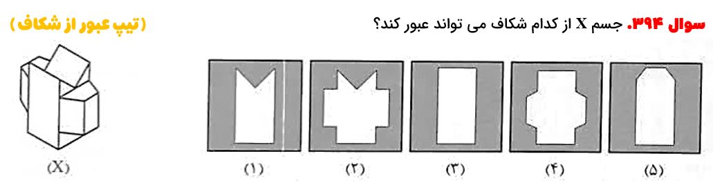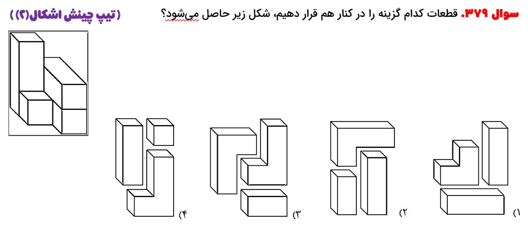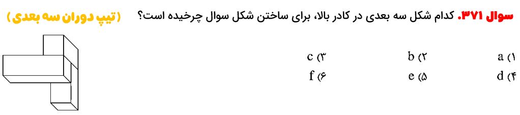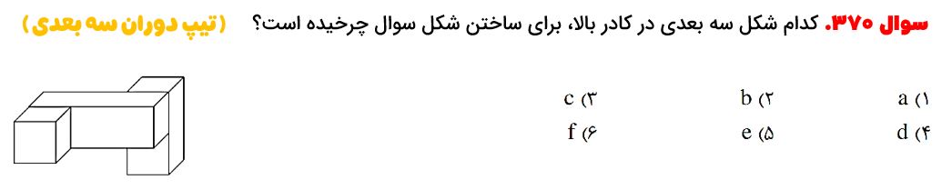 سوال 368. کدام شکل سه بعدی در کادر بالا، برای ساختن شکل سوال چرخیده است؟