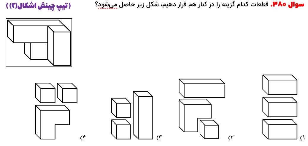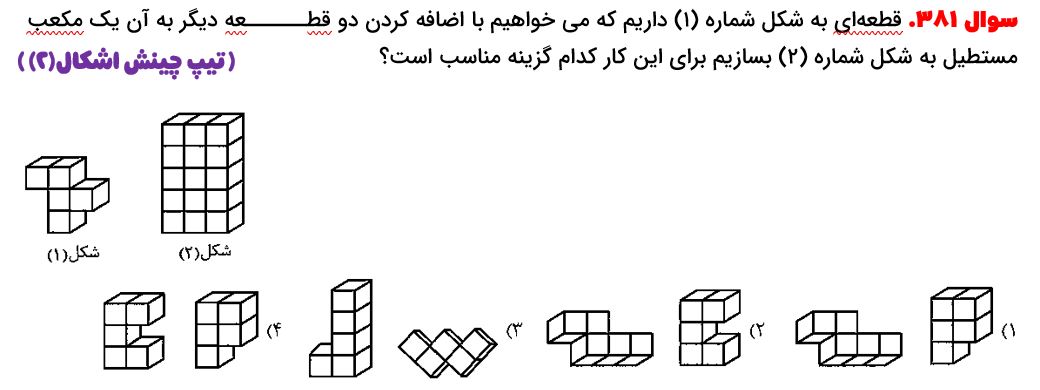 پاسخ تشریحی: گزینه 3-با شمارش های مکعب های کوچک به گزینه 3 می رسید.