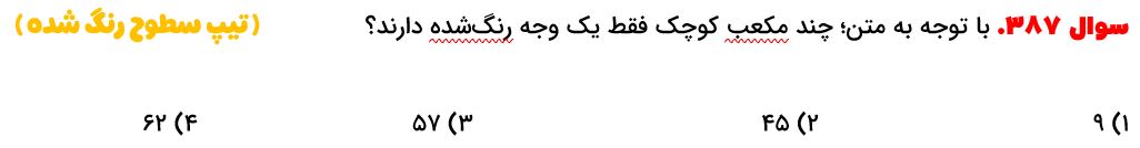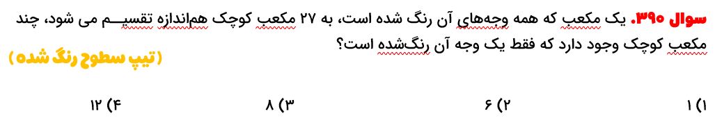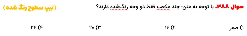 پاسخ تشریحی: گزینه 1 - یعنی همان سه وجه رنگی که فقط 8 تا داریم.