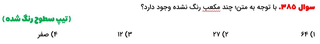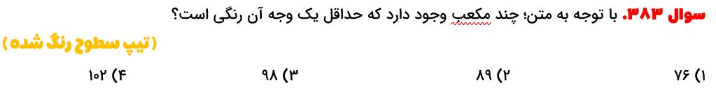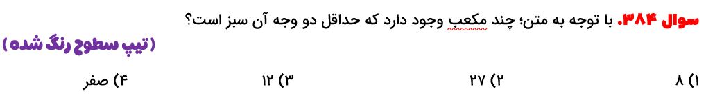 پاسخ تشریحی: گزینه 1 - طبق متن مکعبی نداریم که یک وجه آن سبز و وجه دیگری قرمز باشد.