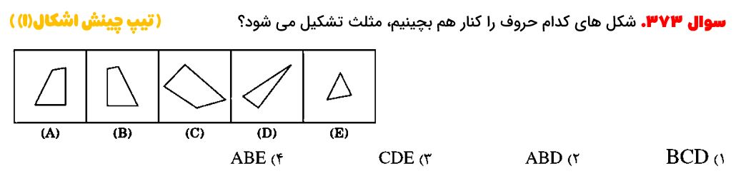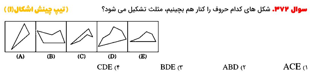 پاسخ تشریحی: گزینه 1- چون A اندازه بزرگ و E زوایای خیلی نامرتبطی با بقیه شکل ها دارد.
