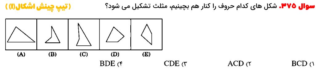 پاسخ تشریحی: گزینه 1- چون D اندازه بزرگ و E زوایای خیلی نامرتبطی با بقیه شکل ها دارد.1