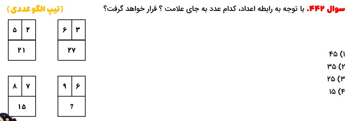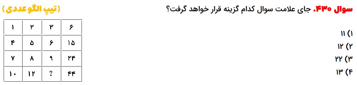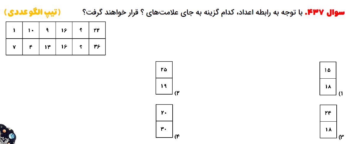 سوال 347. مشخص کنید به جای «؟» کدام گزینه قرار می گیرد؟