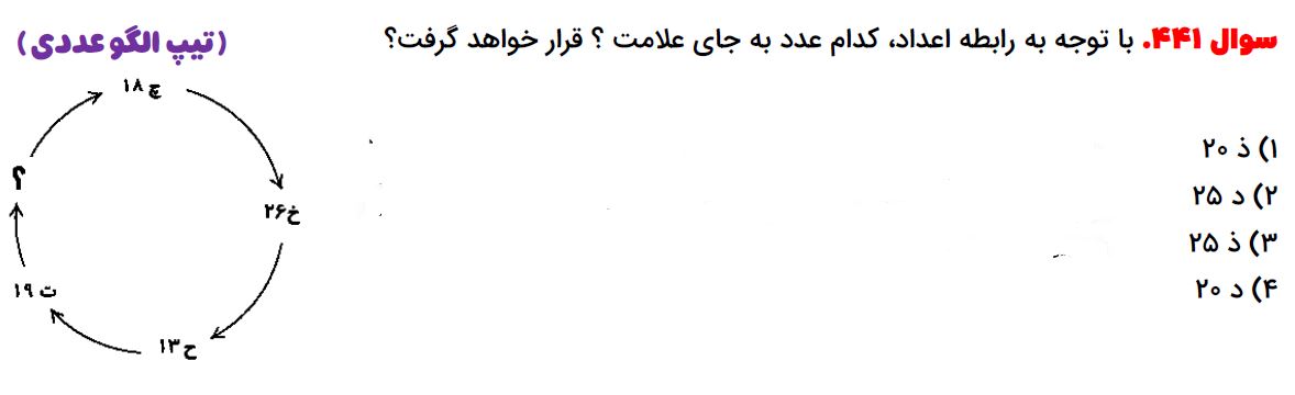 - حروف به اعداد : در این تیپ تست حروف با اعداد الگویی دارند که بایـد آن را به دست بیاورید.