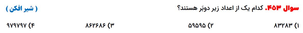 - سوالات معنایی: این نوع سوالات به توانایی تحلیل و فهم معنای واژگان و عبارات مختلف مربوط میشود.