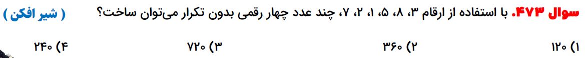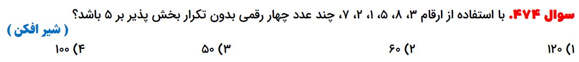 پاسخ تشریحی: گزینه 4-با روش های مطرح شده در جزوه اگه پیش برید به گزینه 4 خواهید رسید که از بین مواردی که گفته شده فقط چهار مورد درست هستند.