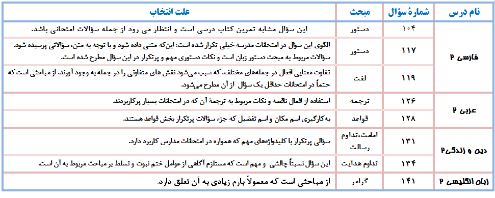 این مطلب حاوی سؤالاتی است از آزمون 7 فروردین که انتظار میرود در امتحانات نهایی پایان سال تکرار شوند و یا نکات موجود در آنها تکرار شود.