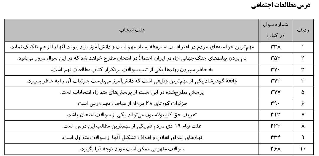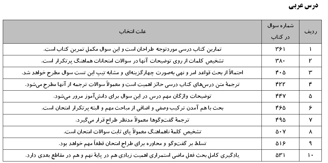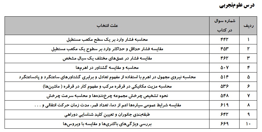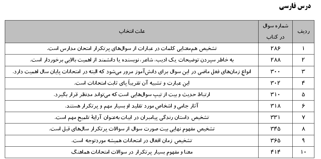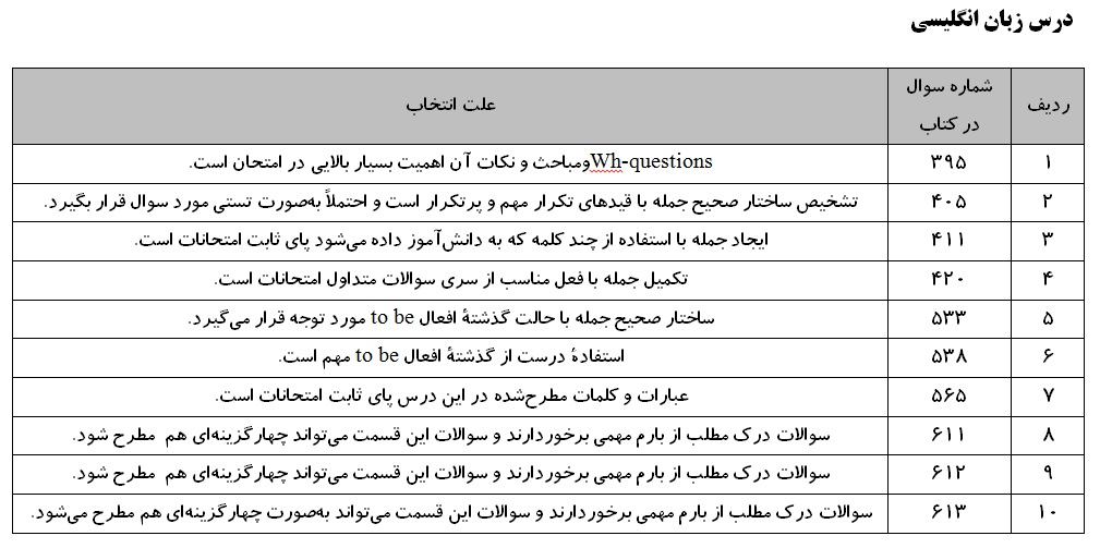 سوالات پیشنهادی از کتاب آبی مطابق با سرفصل آزمون 16 فروردین