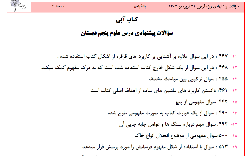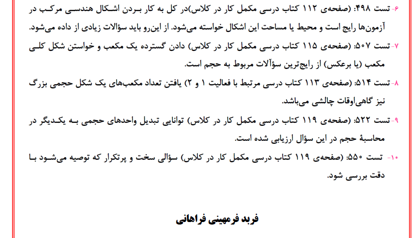 در این مطلب، سوالاتی از بودجهبندی آزمون 31فروردین 1403 از کتاب آبی در 2 درس ریاضی و علوم که مشابه امتحانات نهایی و پایان سال بوده اند و احتمال مطرحشدن آنها به عنوان سوالات امتحانات نهایی زیاد است، برای شما گردآوری شده است: